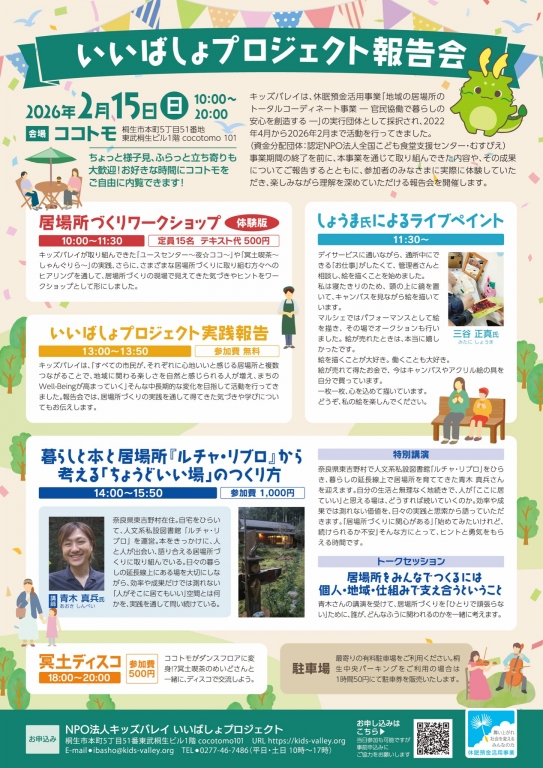 休眠預金活用事業「いいばしょプロジェクト報告会」を開催します